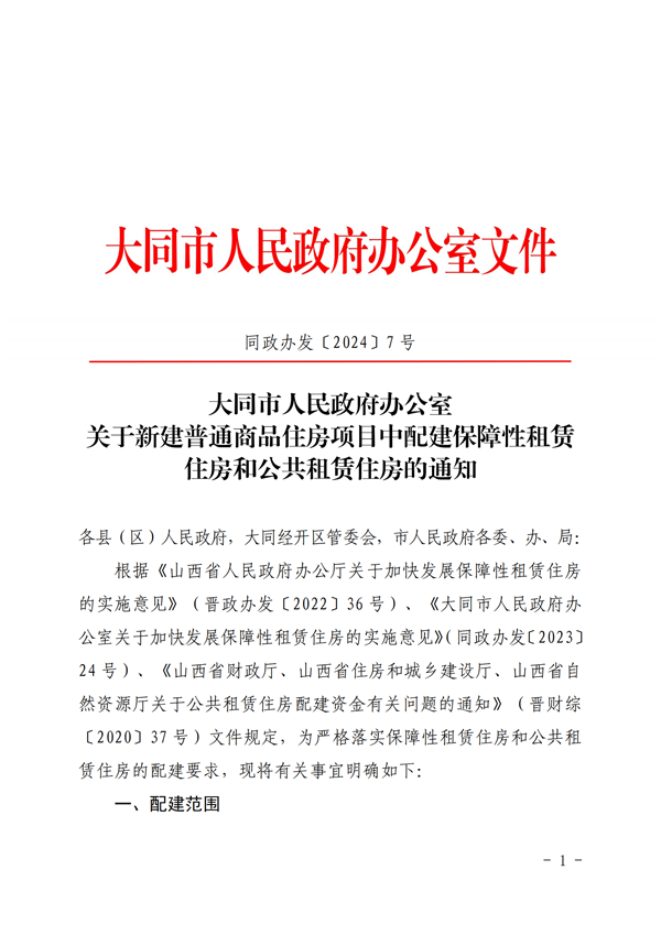 大同市人民政府辦公室關于新建普通商品住房項目中配建保障性租賃住房和公共租賃住房的通知
